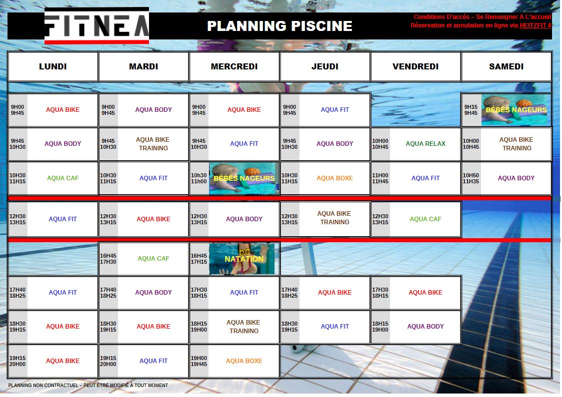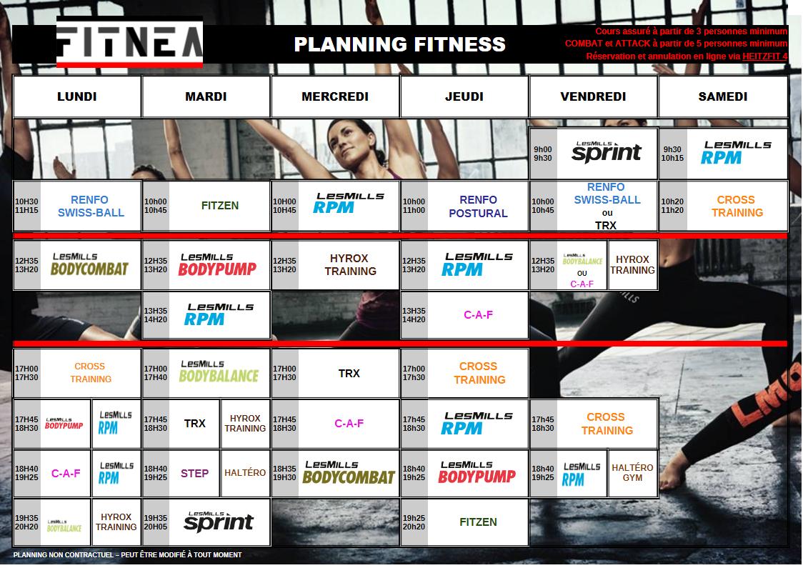Le planning des cours est susceptible d’être modifié en fonction de la demande des abonnés et des tendances.